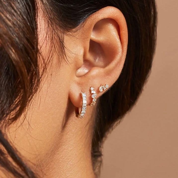 These earrings are a versatile addition to any fine jewelry collection, wear them solo for subtle sparkle or layer them with other hoops and studs for a curated, on trend look.