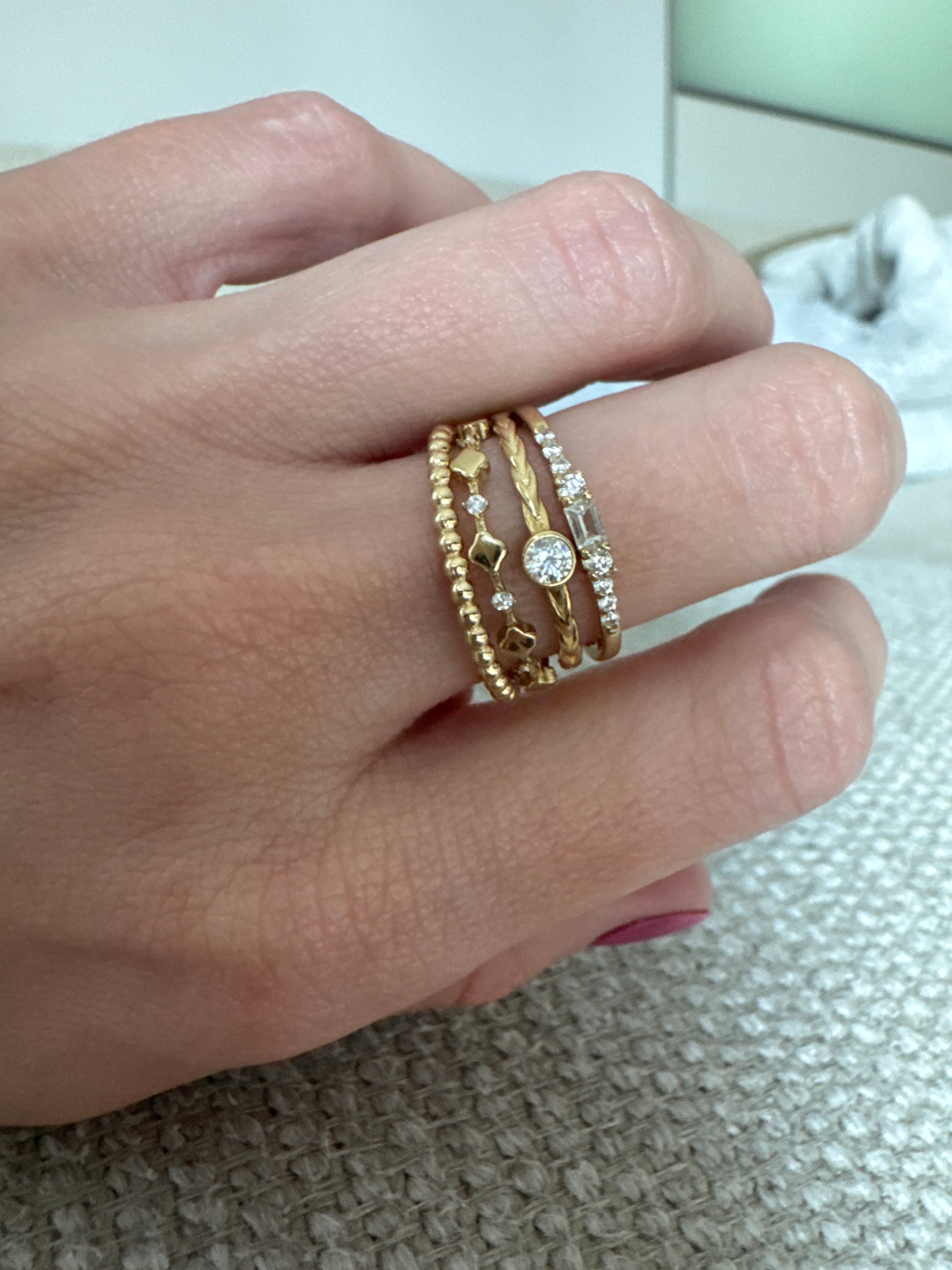 Braided stacking band bezel stone